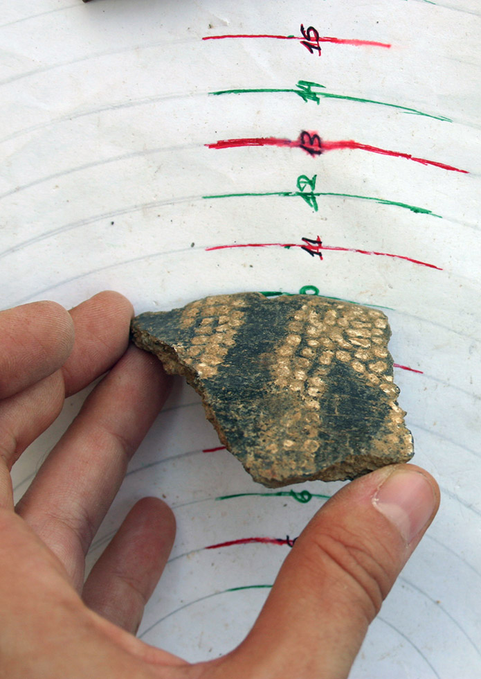 O νεολιθικός οικισμός της Φτελιάς στη Μύκονο έφερε στο φως ενδείξεις πολύχρωμων αγγείων (κυρίως φιάλες) που χρονολογούνται στο τέλος της 6ης χιλιετίας π.Χ. Πάνω στην σκούρα και στιλπνή από την στίλβωση επιφάνειά τους έφεραν κόκκινα και λευκά σχέδια. Μάλλον τα κοσμήματα ζωγραφίζονταν μετά από μία πρώτη φάση όπτησης των αγγείων και ενδεχομένως ακολουθούσε η τελική φάση όπτησης για να ολοκληρωθεί η πρόσφυση της βαφής. Ίσως έτσι εξηγείται το γεγονός ότι η βαφή αποκτά την υφή και τη μορφή κρούστας, απολεπίζεται γρήγορα και στα περισσότερα αγγεία έχουν απομείνει μόνο λίγα ίχνη της. Θα μπορούσε να αναρωτηθεί κανείς εάν η διακόσμηση αυτή φθείρονταν και κατά τη διάρκεια της ζωής ενός αγγείου και αν υπήρχε πιθανότητα τα αγγεία να ξαναζωγραφίζονταν πολλές φορές από τους νεολιθικούς κεραμείς.