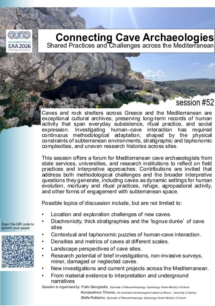 2025, S. Katsarou, A. Nagel, A. Karadima, Akarnania’s ancient caves in modern times: new archaeological research and material evidence, Interdisciplinary Studies in Ancient Western Greece and Beyond. Farewell to Franziska Lang, International Conference, Technical University of Darmstadt, 11-12 December 2025 (Organizer: Technical University of Darmstadt).